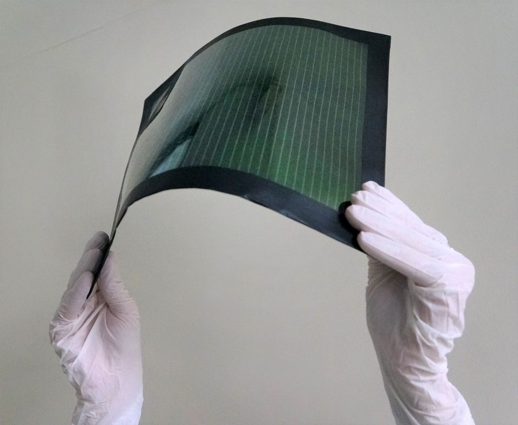 目前,單結鈣鈦礦組件產業化進展較為突出,其中協鑫、纖納率先完成100MW單結鈣鈦礦組件中試線安裝,極電光能756cm2大尺寸鈣鈦礦光伏組件轉換效率目前達到18.2%。